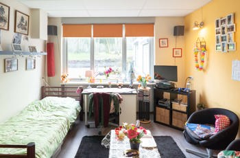 Woonlocatie Grebbeweg 125 beschikt over studio’s en slaapkamers. Mensen met een studio worden begeleid vanuit hun studio. Afhankelijk van de zorgvraag word je individueel begeleid of vanuit de huiskamer. Mensen met een slaapkamer worden begeleid vanuit de huiskamer, als groepswonen. Je onderneemt dan met de andere bewoners gezamenlijk activiteiten zoals eten en koffie drinken.