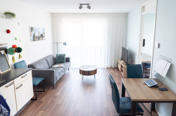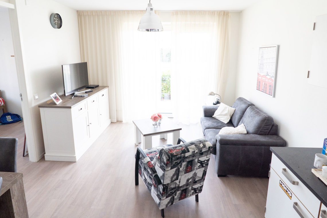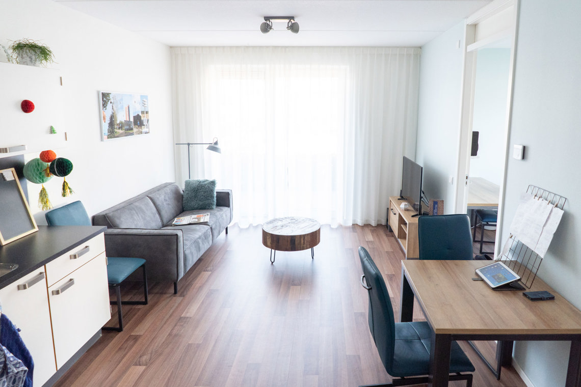 Als je bij Hollandia komt wonen, dan krijg je een eigen appartement met een woonkamer, een slaapkamer en een badkamer met toilet. Er is daarnaast een gezellige groepsruimte. Die heeft een keuken met twee grote eettafels. Hier maken we samen lekkere, verse maaltijden klaar die we met elkaar eten. Ook is er een terras, waar je op warme dagen fijn buiten kunt zitten. Als je op de begane grond woont heb je zelfs een eigen terras. Daarnaast is er een gezellige woonkamer waar je samen met je medebewoners gebruik van kunt maken. Eén huisgenoot is wel heel erg lief en bijzonder, want bij Hollandia woont ook een konijn!