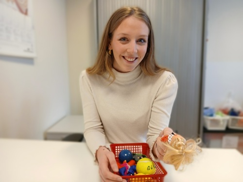Nienke (25) kwam als klein meisje al met haar moeder mee naar Zideris. Ze studeerde af als logopediste, maar vond niet genoeg uitdaging in de eerstelijns praktijk. Zo raakte ze weer in gesprek met Zideris en nu vormt ze samen met Femke en Clementine het team van logopedie. "Dat je iets kunt beteken voor een cliënt vind ik echt het mooiste wat er is."